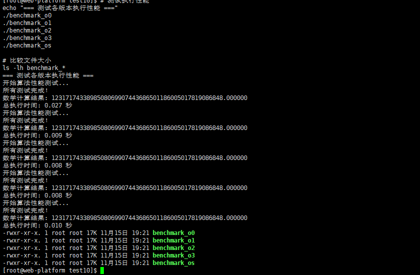 为了测试不同优化级别下的编译效率,我们创建一个包含多种算法的测试程序:
