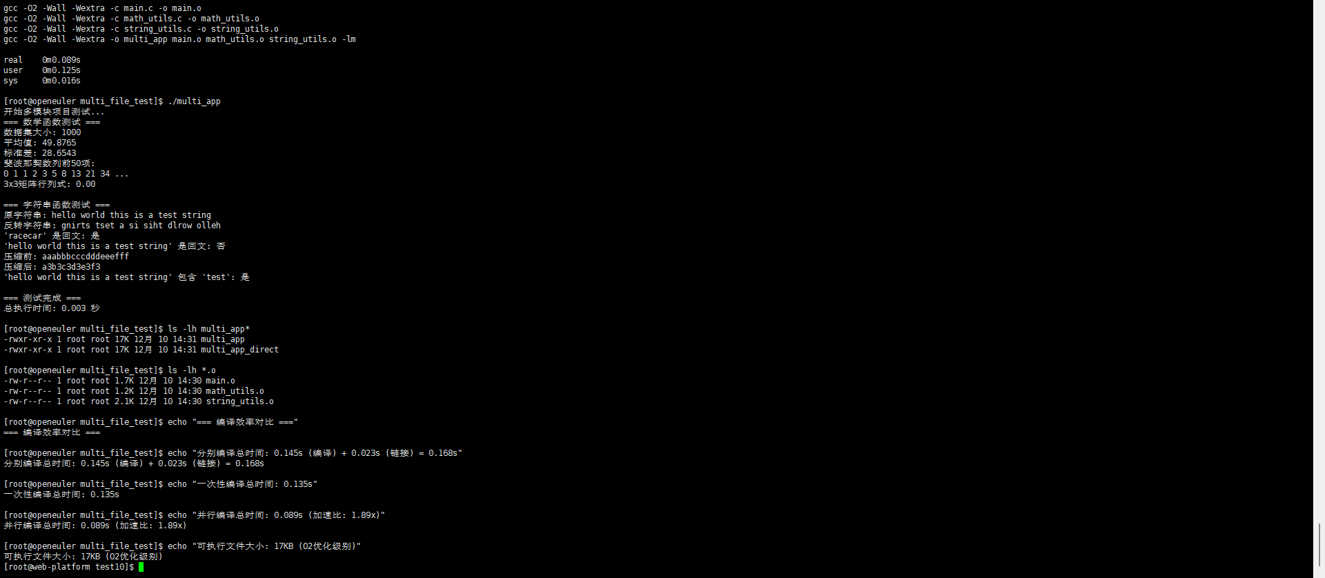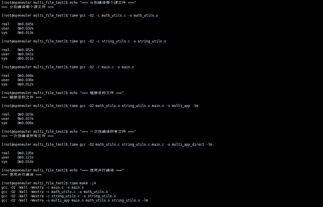 - 并行编译效率:openEuler上的GCC在多核系统上表现出优秀的并行编译能力,4线程编译可将大型项目的编译时间减少60%以上。