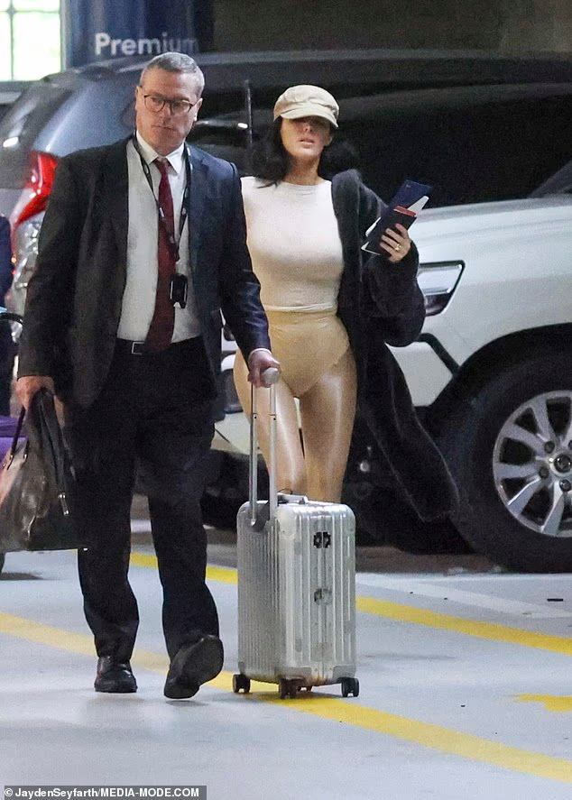 尽管装扮极为抢眼,但这位出生于墨尔本的社交名媛却试图低调行事,用一顶卡其色贝雷帽遮住面容。踩着高耸的细跟鞋,在机场工作人员与私人助理的陪同下,穿过到达大厅走向出口。