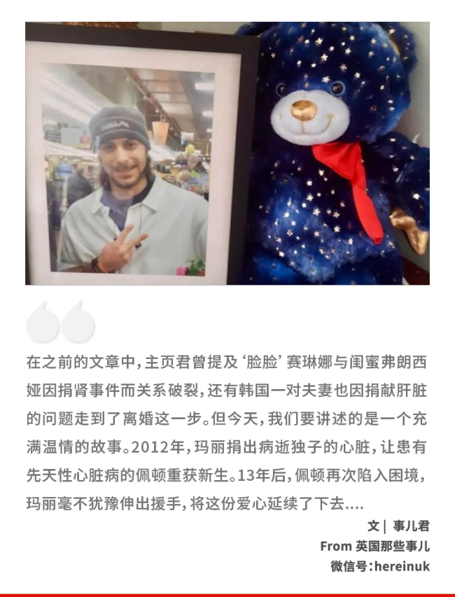 但玛丽却没觉得自己是在一味的付出,她只是说,如果她儿子的心脏出了什么问题,那就好像当初她失去儿子的痛苦又要重来一遍一样……