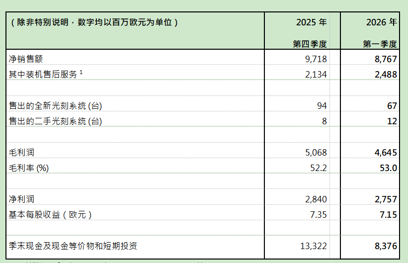 ASML预期第二季度净销售额在84亿至90亿欧元之间,毛利率将介于51%至52%;展望2026全年,ASML上调全年预期净销售额到360亿-400亿欧元,毛利率维持51%至53%不变。