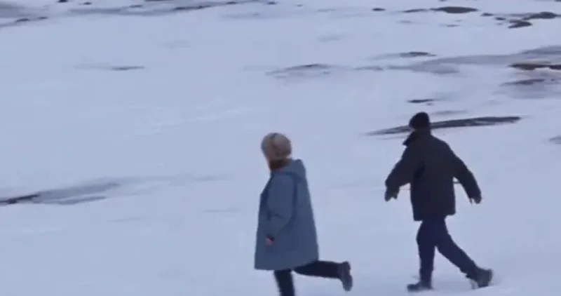 在我停留的这几天,俄罗斯的气温只有零下七八度左右,并非像预想中的零下二三十度那么严寒。这份幸运一直陪伴着我,直到离开捷里的最后一天。捷里分为新旧两个区域,相隔大概三四公里。那天早上,我从新捷里的住处前往老捷里游玩,出发时天气还很正常。但就在我逛完景点准备返回时,狂风突然袭来,还夹带着雨雪。捷里位于北极圈内,已经进入极夜,白昼只有三小时左右,即使白天,光照程度也顶多算是“蓝调时刻”。所以,一旦刮起暴风雪,外面什么都看不见。