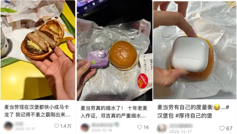 ▲ 网友们晒出麦当劳汉堡变小的证据。图 / 社交平台截图