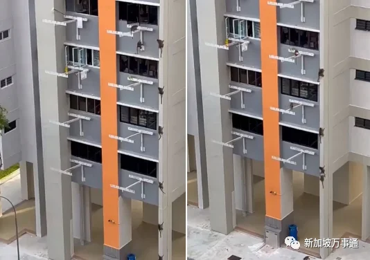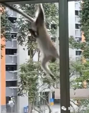 新加坡金文泰某栋组屋外上演一幕“大闹天宫”,7、8只猴子在组屋外围攀爬嬉闹,晾衣架、灯柱成了它们的舞台,从居民家里翻出面包、咖啡,甚至连辣椒酱都不放过。