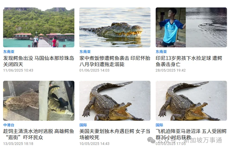 近年来,大马新山和新加坡之间的柔佛海鲜也曾有多起鳄鱼出没得报道!