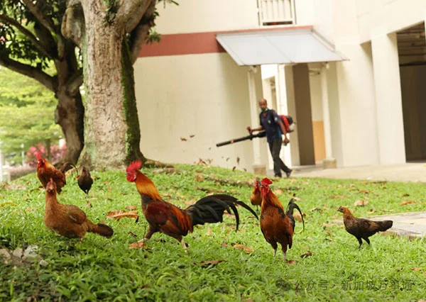 还有不管是在组屋楼下、公园草丛,还是地铁站口,你随时都可能看见一只鸡——从你眼前“嗖”地飞过!
