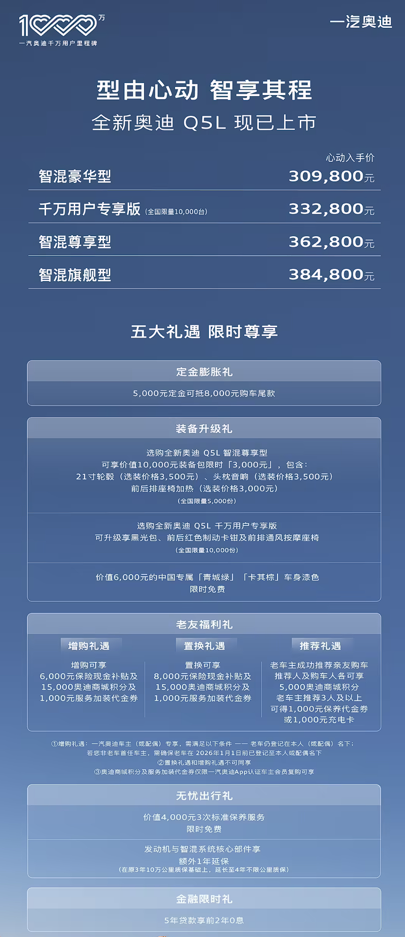 值得一提的是,奥迪已全面和华为合作,自去年的A5L、Q6 e-tron开始,已配备双激光雷达+视觉融合感知方案的华为乾崑智能辅助驾驶系统,而全新的Q5L也不例外(非全系标配)。