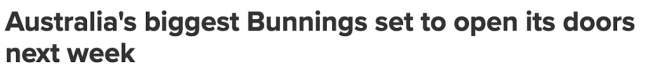 全澳最大的Bunnings Warehouse将于下周在悉尼Frenchs Forest开业。