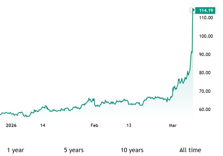 受中东局势升级影响,中东地区石油运输持续受阻,伊拉克、卡塔尔等主要产油国此前已宣布减产,国际油价涨幅持续扩大。WTI原油期货一度突破111美元/桶,日内涨超22%。布伦特原油期货也一度向上触及111美元/桶,日内涨近20%,延续上周28%的涨幅。美国总统特朗普在“真实社交”(Truth Social)上发帖称:为消除伊朗核威胁而付出“短期油价上涨”的代价“微不足道”。