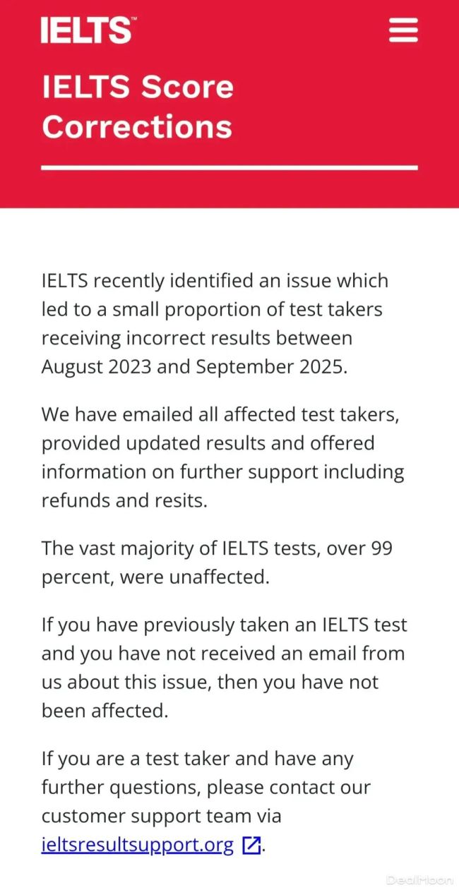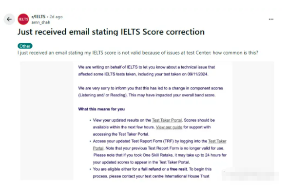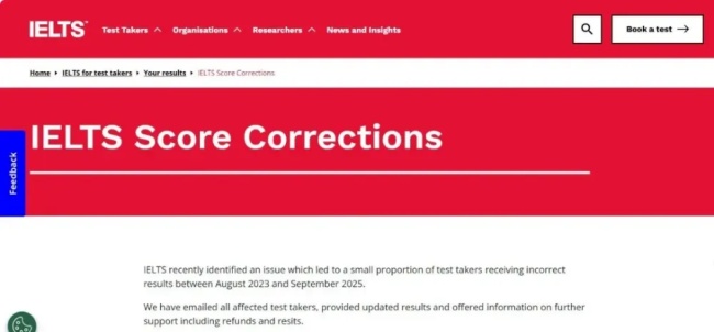 目前,雅思官方已开始向受影响的考生发送更正后的成绩单,部分分数被调高,也有少量考生的分数被调低。