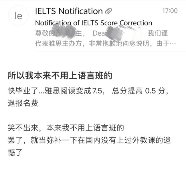 这个消息一出,可谓几家欢喜几家愁,有的幸运儿喜提雅思加分和2000块的天降退费。