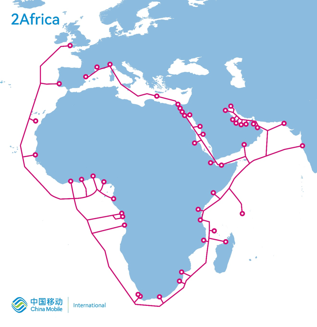 2Africa海缆总长度达4.5万公里,相当于绕赤道一周多,是迄今全球最大规模的跨洋海缆,堪称名副其实的"超级信息高速公路",共设46个登陆点。