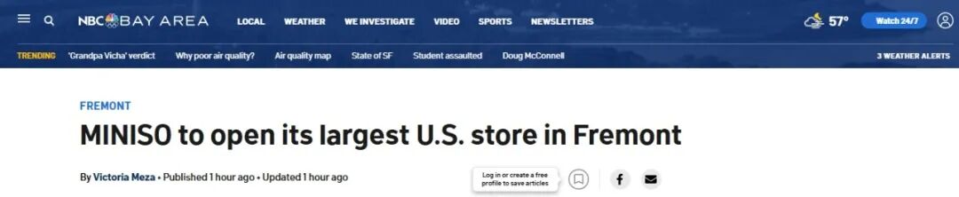 弗里蒙特市官员称,中国零售品牌名创优品(MINISO)将于本周六在弗里蒙特开设其在美国规模最大的门店。