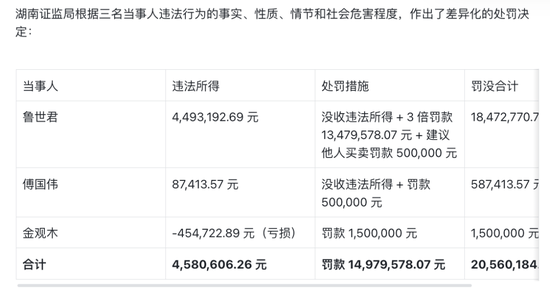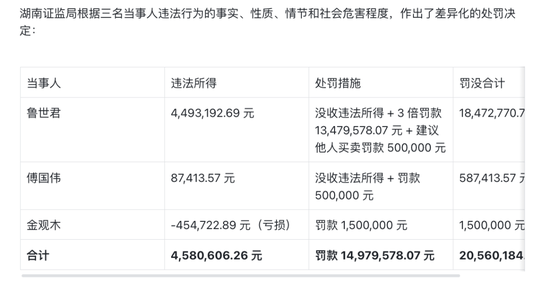 原标题:董秘高中同学总经理朋友和一位退休工人被罚2056万!湖南证监局三份罚单披露万向钱潮董秘闻超和财务总监李平一泄露公司内幕交易信息!