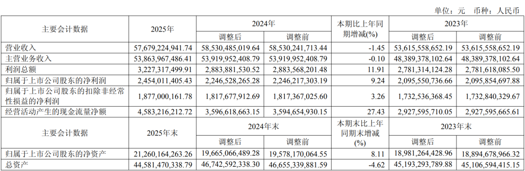 2025年,海信视像实现营业收入576.79亿元,归母净利润24.54亿元,同比增长9.24%;经营活动产生的现金流量净额45.83亿元,同比增长27.43%。