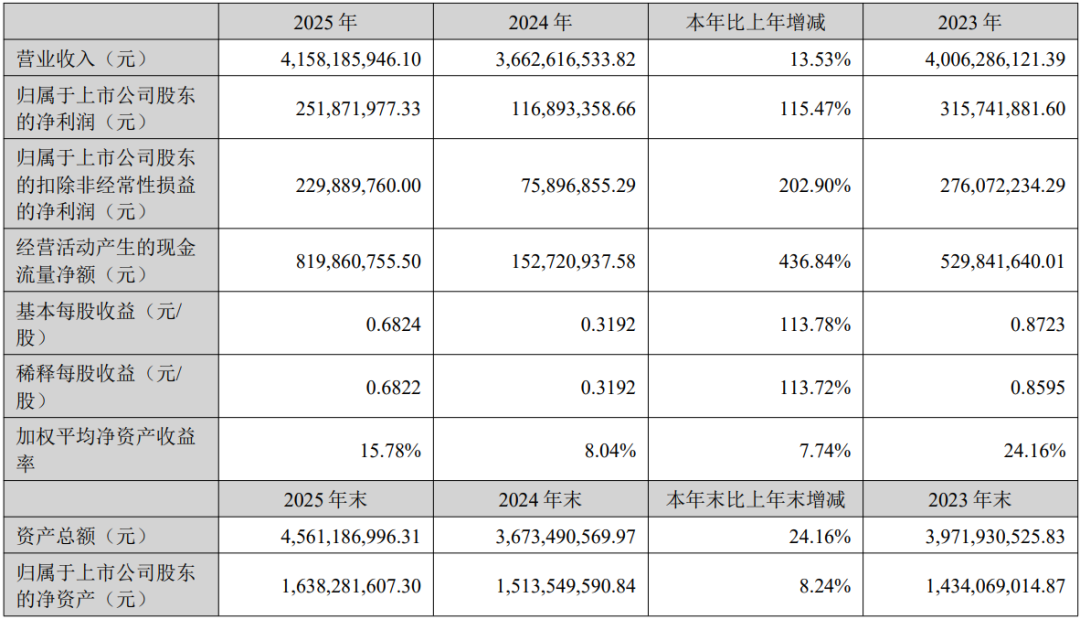 2025年,艾比森实现营业收入约 41.58 亿元,同比增长 13.53%,归属上市公司股东净利润为 2.52 亿元,同比增长115.47%;扣除非经常性损益后的净利润为2.30亿元,同比增长202.90%。从数据来看,艾比森业绩全面向好,在营收稳健增长的同时,实现了利润的倍增,且盈利质量和运营效率均显著提升;且海外稳增态势良好,国内逆势突围。