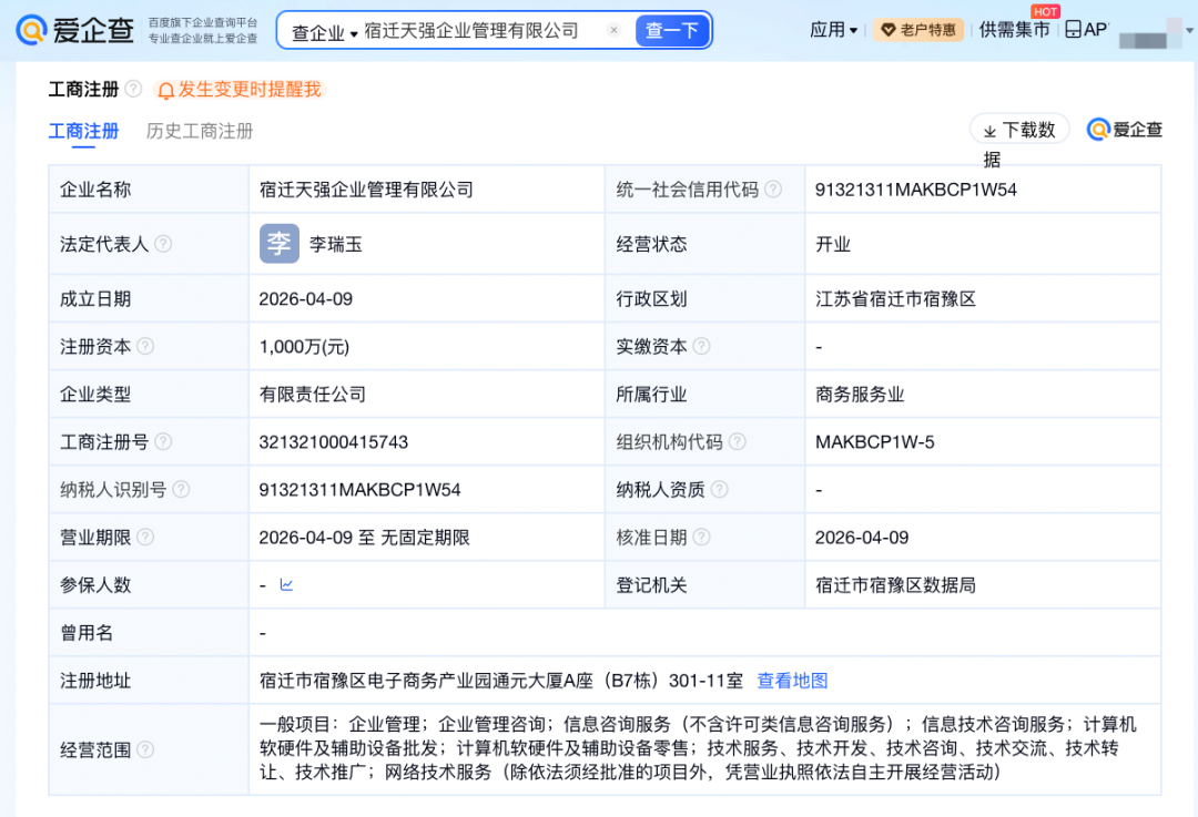 公开报道显示,“天强系”的资本布局并非始于2026年,更早之前,两人已通过海南三亚天博产业私募基金管理有限公司布局私募股权投资领域。该公司成立于2021年,章泽天持股49%,刘强东持股30%,李瑞玉持股21%。