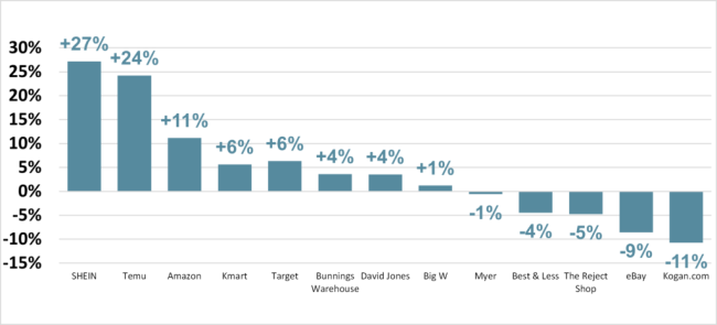 这三个平台在过去一年共新增240万用户,带来约13亿澳元的额外销售额。其中Temu年销售额从16亿增至26亿澳元,Shein从10亿增至13亿澳元。