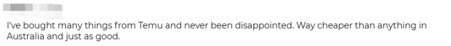 “我在Temu上买了很多东西,从没失望过,比澳洲的很多东西都便宜,而且一样好。”
