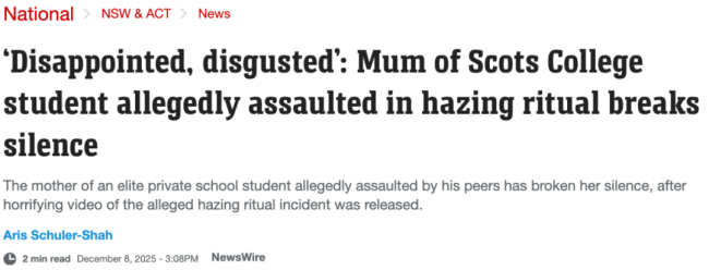 “视频中呈现的行为完全不可接受,完全背离Scots College的价值观。