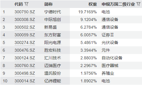 创业板指前十大成分股,数据来源:国证指数,wind;截至2025.12.05,指数成分股不代表个股推介