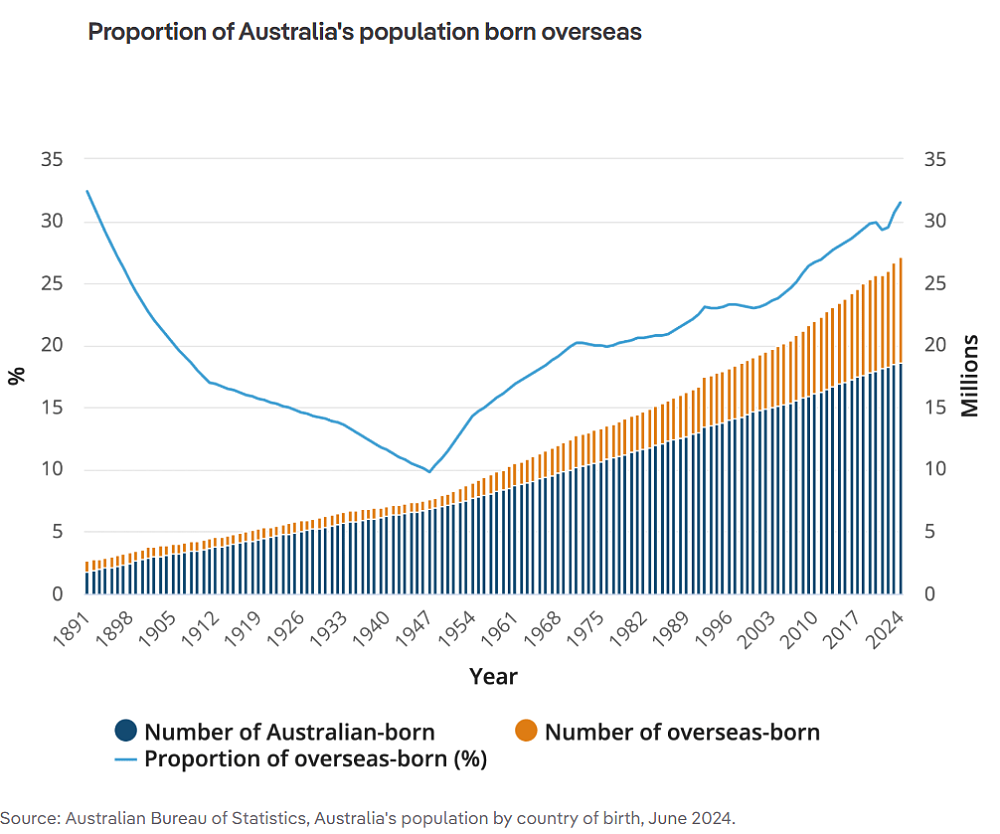 澳洲出生在海外的居民比例达到近三分之一,创下132年来的最高水平。