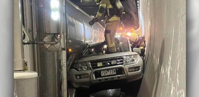 昨晚,墨尔本的Burnley隧道内上演了一场堪比动作片的惊险事故——一辆SUV被巨型油罐车硬生生挤压在隧道墙壁与车身之间,却奇迹般无人受伤。