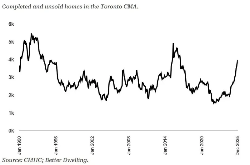 多伦多都会区已建成但未售出的房屋:
