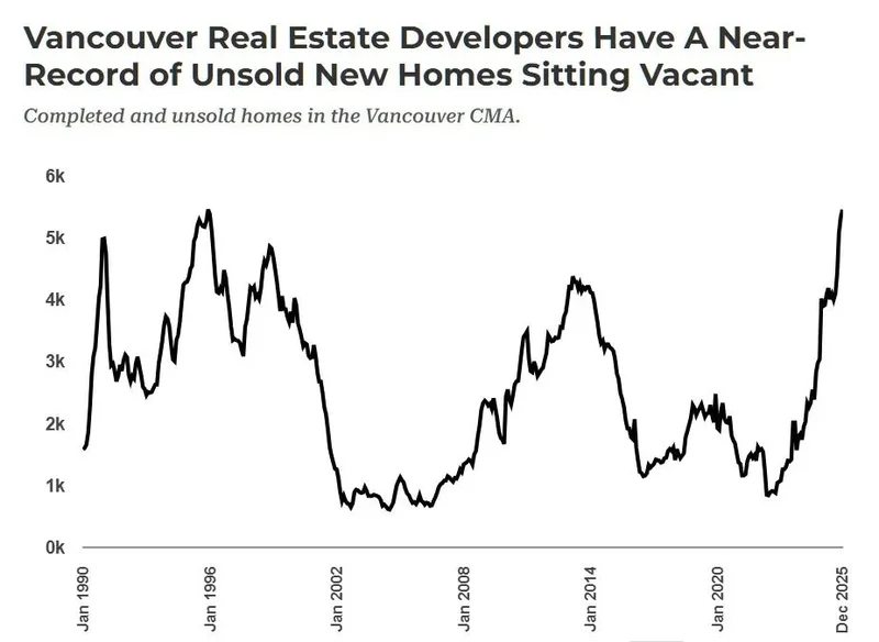 大温地区的房地产价格比多伦多更具韧性。然而,该地区的人口不到多伦多的一半,但已建成但未售出的房屋数量却更多。
