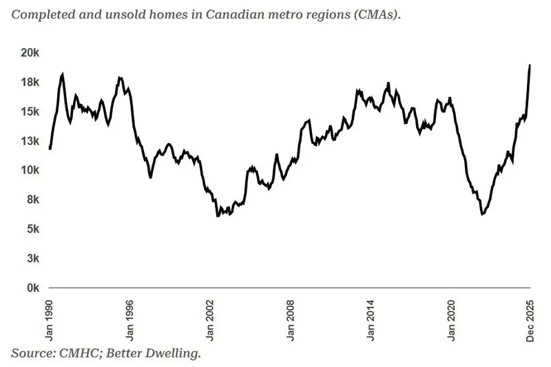 更令人惊讶的是,这些空置的新房中有一半位于多伦多和温哥华,尽管需求疲软,但这两个城市的房价却一直居高不下。随着库存积压加剧,房价面临越来越大的下行压力,这种情况可能很快就会改变。