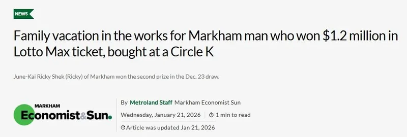 最近一段时间,可能是 $8000万 大奖的宣传效果,安省的彩票销售相当红火。华人朋友们中奖的好消息也不断传来,比如前一阵万锦也有一位中了 $120万 大奖的华人。