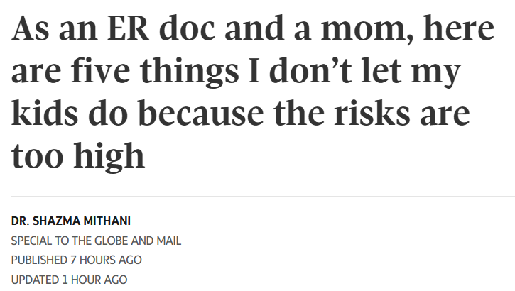 我们不能(也不应该)保护孩子免于每一次磕碰或擦伤,但工作经历让我对可接受风险有了更清晰的判断。有些事情,我就是不允许孩子去做,不是因为我过度保护,而是因为我亲眼见过事情出错时的后果。