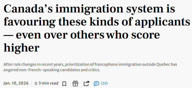 这意味着,在一套号称「按分数择优」的移民系统里,近一半的邀请,优先给了会法语的人。