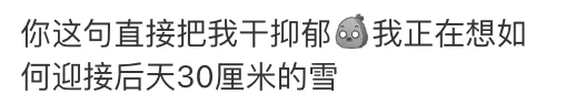 “你这句直接把我干抑郁,我正在想如何迎接后天30厘米的雪。”