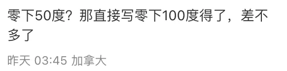给多伦多下伙伴气的:“零下50度?那直接写零下100度得了,差不多了!”
