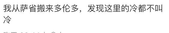 “我从萨省搬来多伦多,发现这里的冷都不叫冷。”