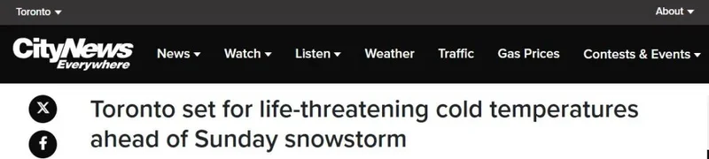 多伦多本周末:先致命严寒、后特大暴雪
