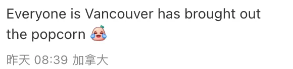 “温哥华的正在吃瓜。”