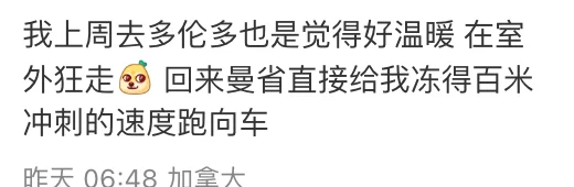 “我上周去多伦多也是觉得好温暖,在室外狂走。”