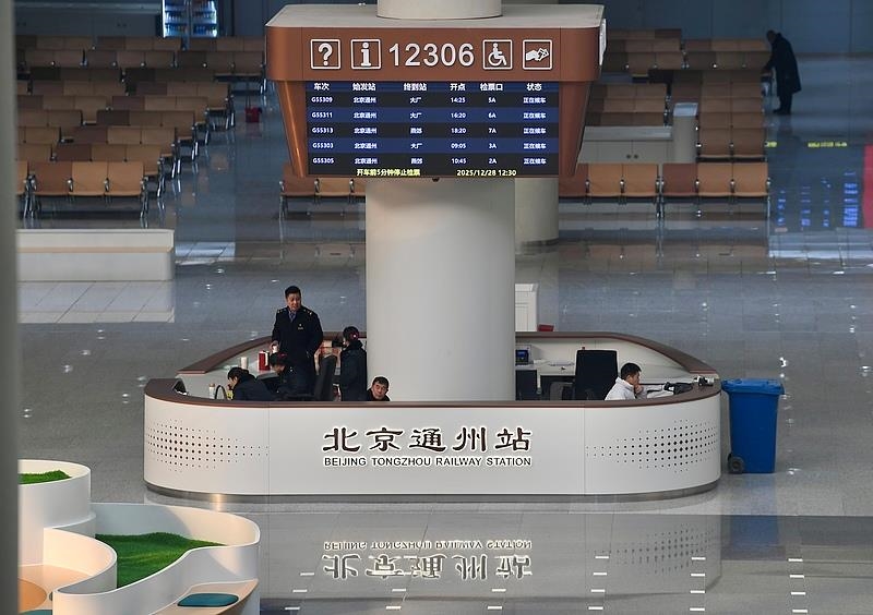 运营初期,北京通州站开行12对列车,办理京唐城际铁路和京滨城际铁路(建成段)列车始发终到作业。