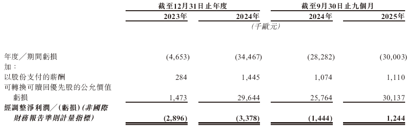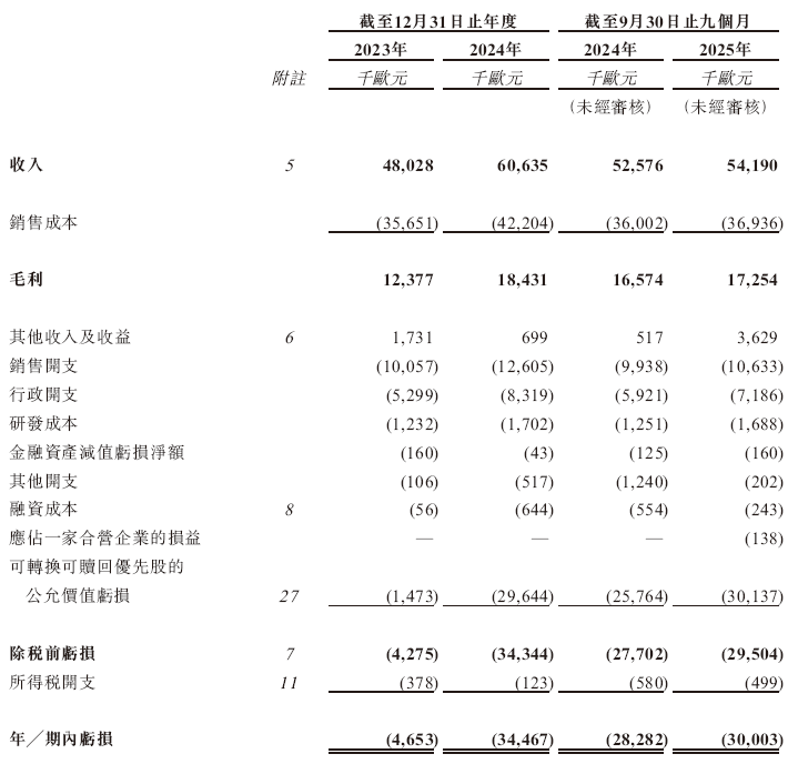 招股书显示,在过去的2023年、2024年和2025年前九个月,TENWAYS的营业收入分别为4,802.8万、6,063.5万和5,419.0万欧元,相应的净亏损分别为465.3万、3,446.7万和3,000.3万欧元,相应的经调整净利润分别为-289.6万、-337.8万和124.4万欧元。