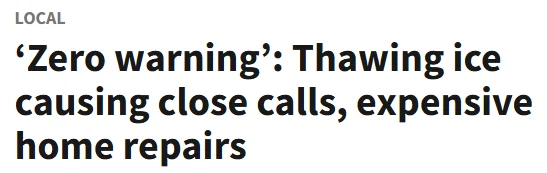 他还表示,屋顶上的积冰会渗进屋瓦下方,进而造成房屋漏水。积冰若不及时清理,融化后会给房屋造成数千美元的损毁。