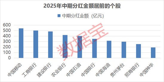 2025年中期分红(含一季度、半年报、三季度)公司数量显著增加,合计1113家公司参与中期分红,中期分红总额达到8148.82亿元, 显著超过2024年的约6700亿元。中国移动、工商银行、建设银行中期分红金额居前,分别为540.87亿元、503.96亿元、486.05亿元。