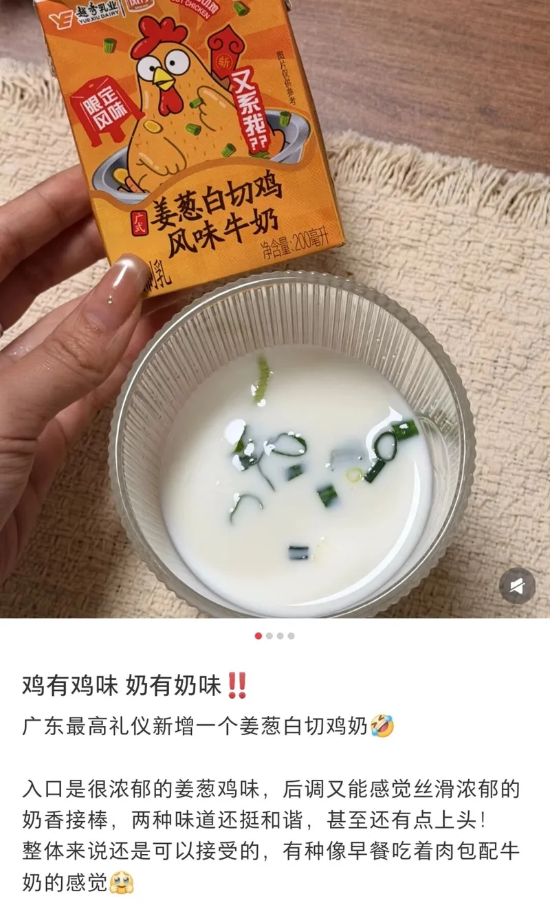 姜葱白切鸡味牛奶