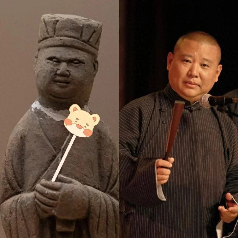 郭德纲和陕西历史博物馆牵马俑也撞脸了。网络图