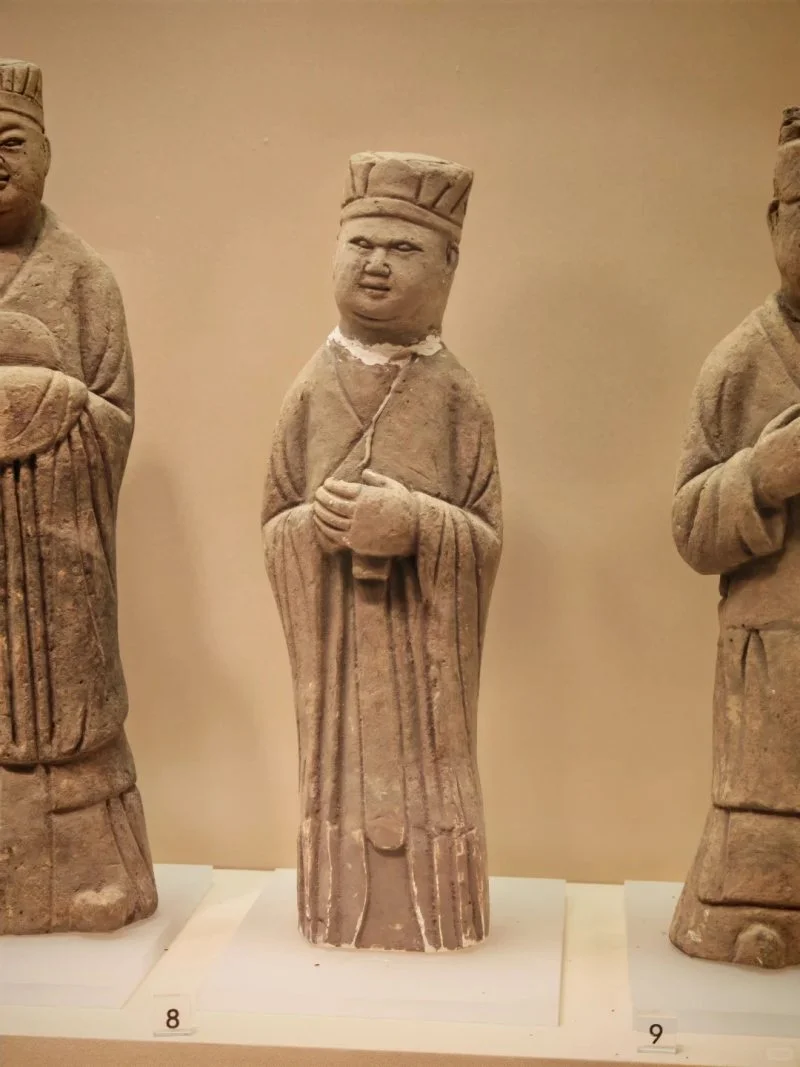 男陶俑(中)出自南唐李昪陵墓。 网络图