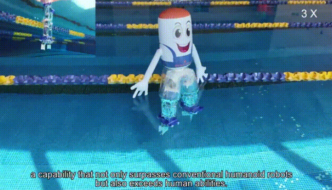 不止于陆地,它的能力还延伸到了水域。由于密度仅为水的5.8%,它不仅能在水中漂浮游泳,还能负担自身16倍的重量,借助脚蹼和质量块,它甚至能实现轻功"水上漂",可用于水上救援等、水面清理等任务。