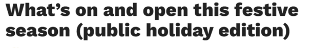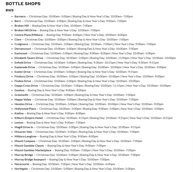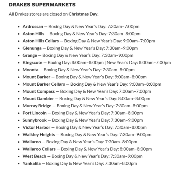 据《glamadelaide》报道,新年即将来临,一份清单列出了在圣诞节、Boxing Day和元旦当天营业的超市、零售店、酒类专卖店以及活动场所。