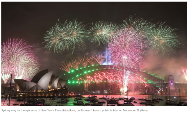 南澳和北领地,12月31日晚上7点至午夜被指定为半日假日。