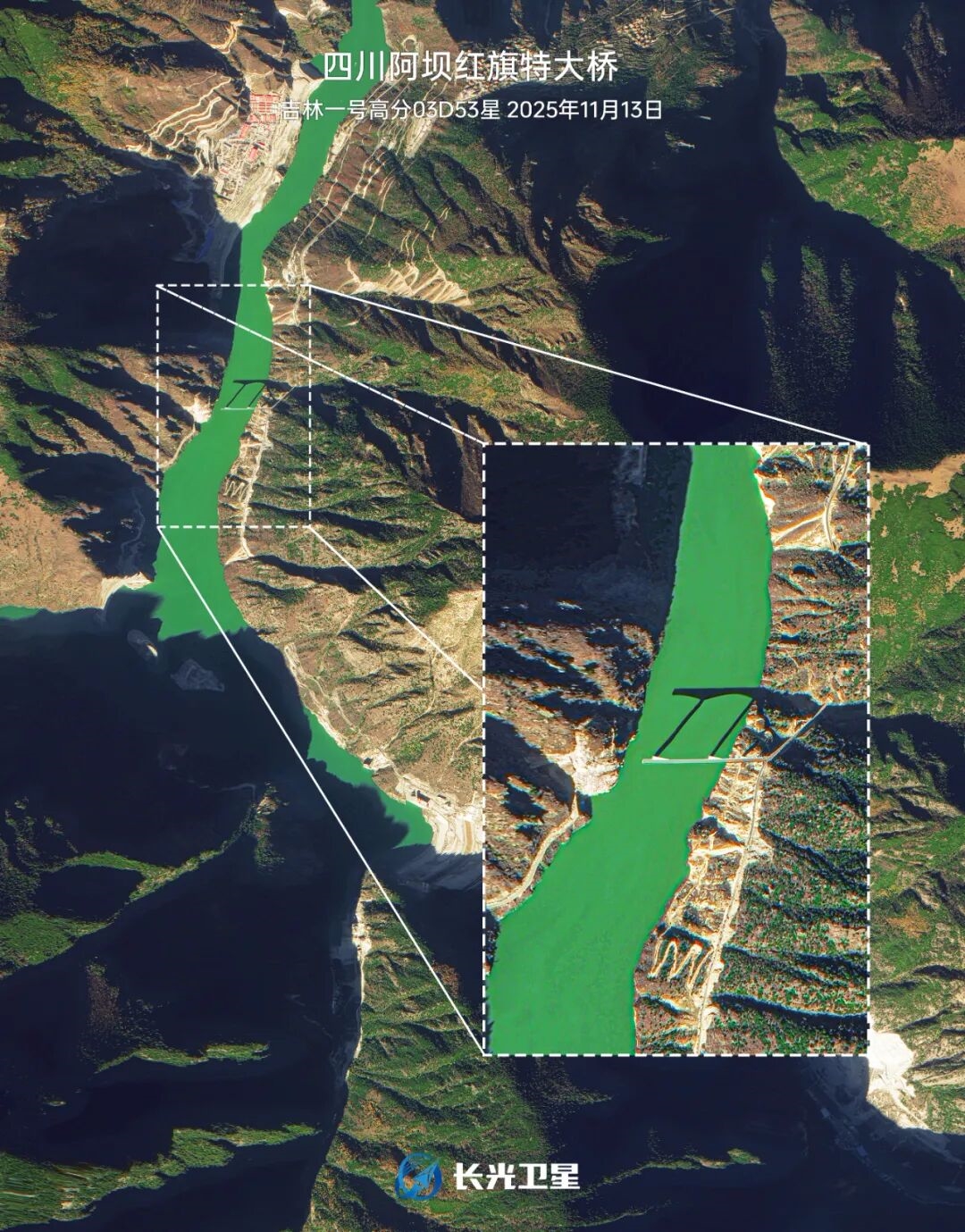红旗特大桥为双江口水电站库区复建公路工程,今年1月14日完成中跨合龙,通车不足10个月。